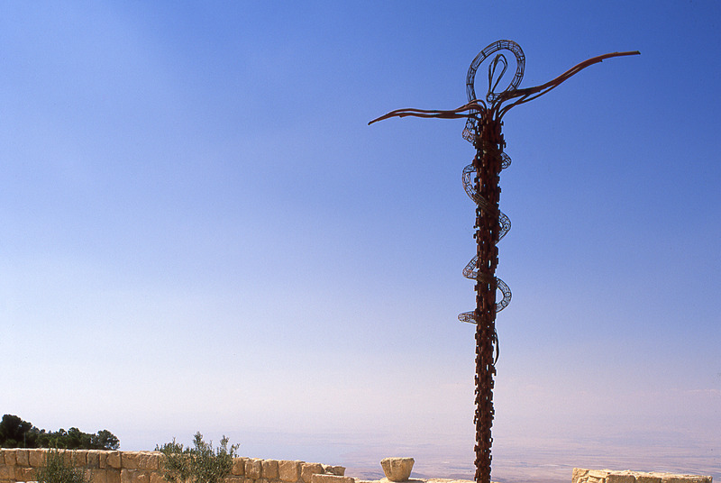 Mount Nebo, modern cross and Dead Sea in background