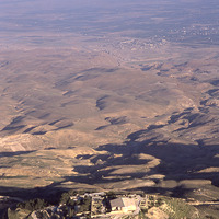 Mount Nebo, Memorial of Moses, from south east, Jordan Valley in background