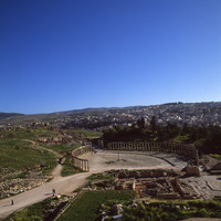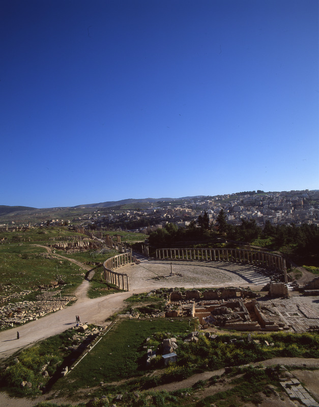 Jordan. Jerash, view from Temple of Zeus to Oval Piazza and Cardo