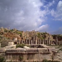Jordan. Jerash, Fountain Court, Serapion passage in background