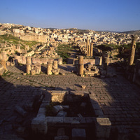Jordan. Jerash, Fountain Court and Cathedral