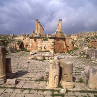 Jordan. Jerash, Fountain Court, St. Theodore's church behind