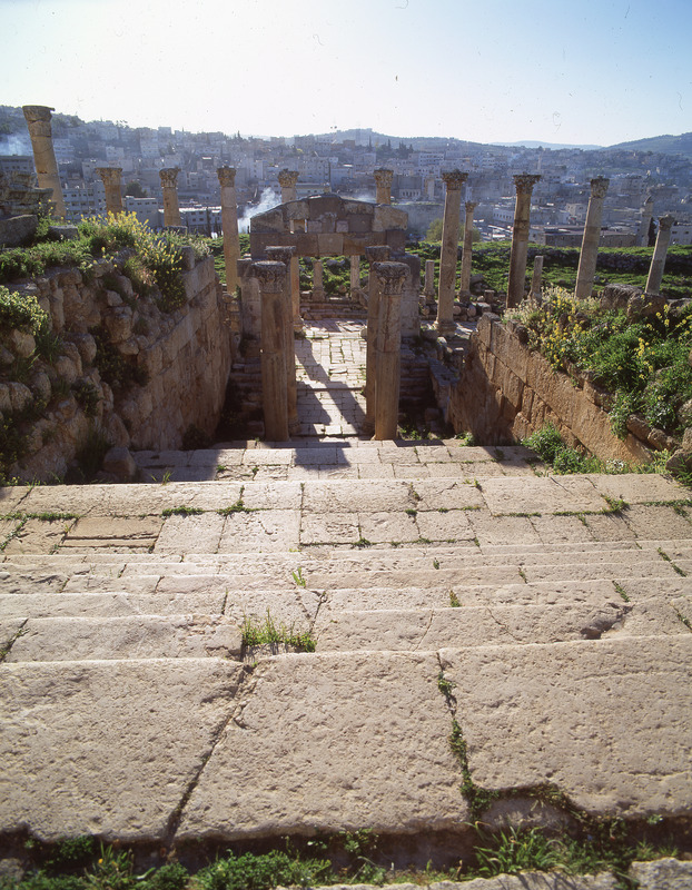 Jordan. Jerash, doorway and stairs from Cardo to Cathedral