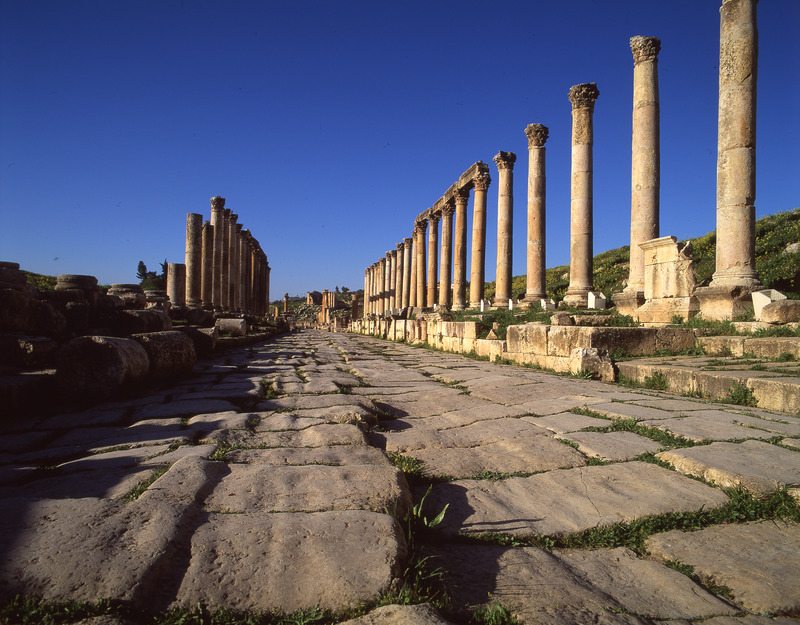 Jordan. Jerash, Cardo looking towards Temple of Zeus