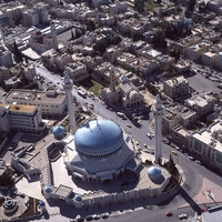 Amman, King Abdullah Mosque, two churches and city from west