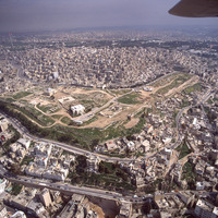 Amman, left - shaped citadel hill (Jabal al-Qala'a) in middle of modern city from west