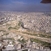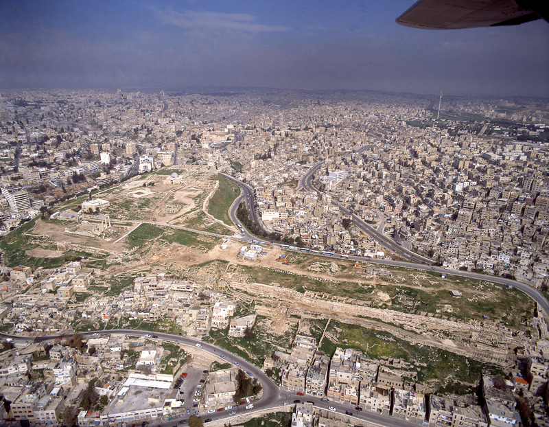 Amman, left - shaped citadel hill (Jabal al-Qala'a) in middle of modern city from south west