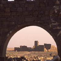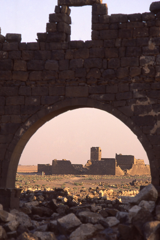 Umm al-Jimal, barracks through west church arch