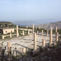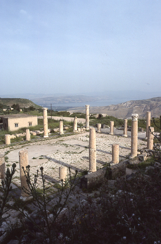 Umm Qeis, colonnaded courtyard and Lake Tiberias