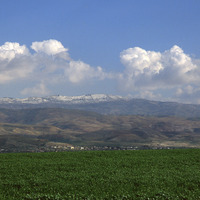 Jordan Valley in spring view east snow on Ajlun hills