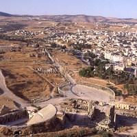 Jordan. Jerash, South Theater, Temple of Zeus, Oval Piazza