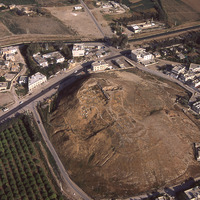 Jordan. Deir Allah, ancient tell in middle of town, view from east