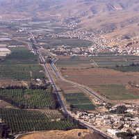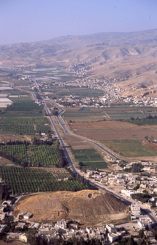 Jordan. Deir Allah, ancient tell in middle of town, view from east
