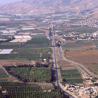 Jordan. Deir Allah, ancient tell in middle of town, view from east