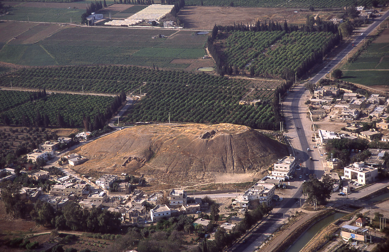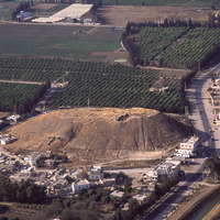 Jordan. Deir Allah, ancient tell in middle of town, view from east