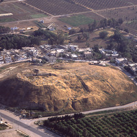 Jordan. Deir Allah, ancient tell in middle of town, view from east