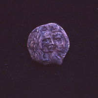 Nabataean coin showing profiles of Aretas IV and Queen Shaqilath