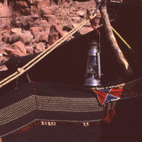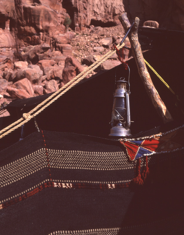 Petra, bedouin tent, rug dividing majlis from women's room and lamp