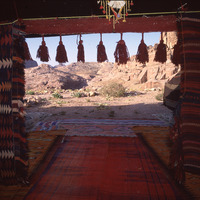 Petra, bedouin tent, from women's room looking to Wadi Thughra