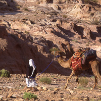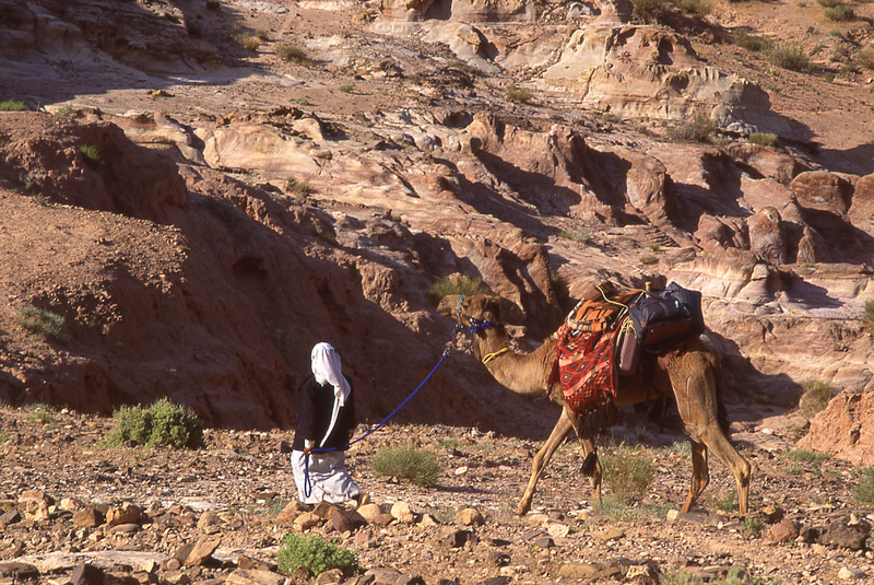 Camel trek, descending into Wadi Adh Dhaman