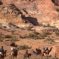 Camel trek, descending into Wadi Adh Dhaman