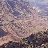Camel trek, descending into Wadi Sabra on old trade route