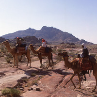 Camel trek, Jabal Haroun in background