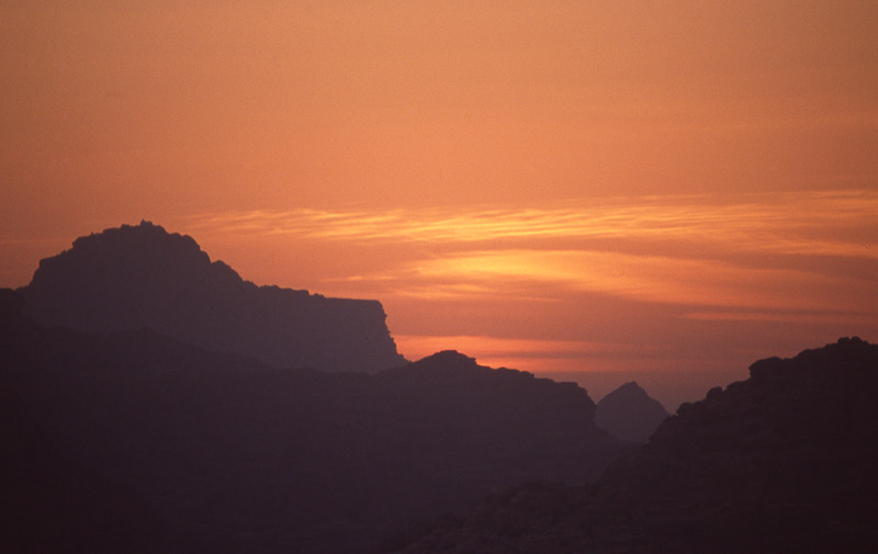 Petra, sunset and Jabal Haroun (left)