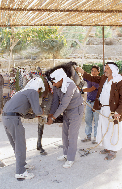 Wadi Mousa, farrier shoe tourist horse at Brooke Hospital for animals