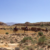 Camel trek, re-used Nabataean terraces in Wadi Sleisel