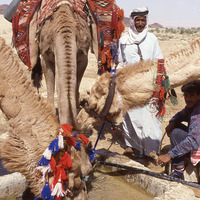 Camel trek, watering place by Qasr at Taibeh