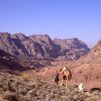 Petra, camel and donkey in Wadi Batahi