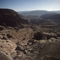 Petra, Snake monument and Djinn Blocks with view north east towards Petra