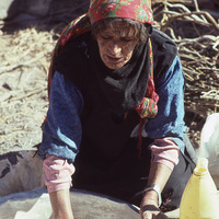 Petra, Jabal Haroun, Bedouin (of Wadi Araba) makes bread
