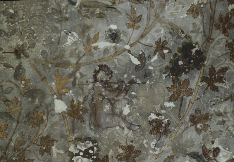Petra, Siq al-Barid, detail of fresco in painted house, showing Pan playing pipes amid foliage