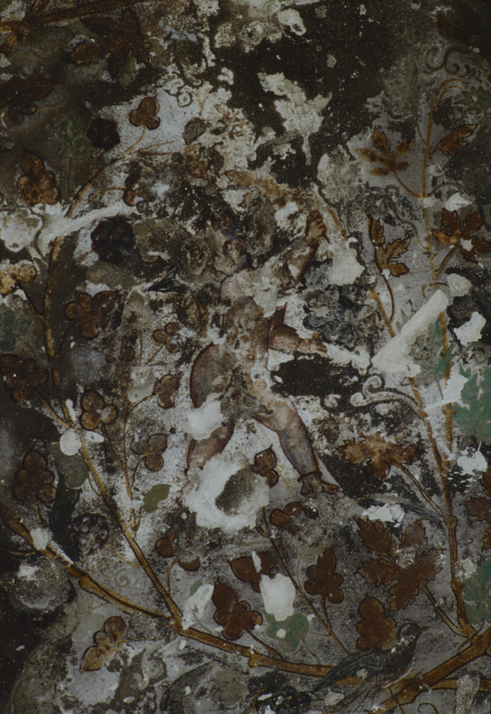 Petra, Siq al-Barid, detail of fresco in painted house, showing figure amid foliage