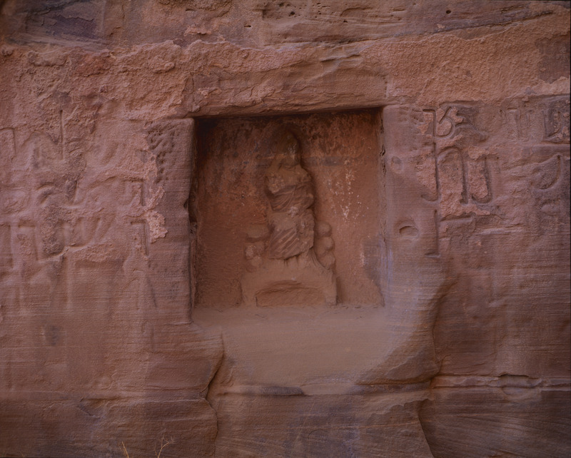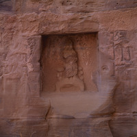 Petra, relief of Isis in niche and Nabataean inscriptions of Wadi as Siyyagh