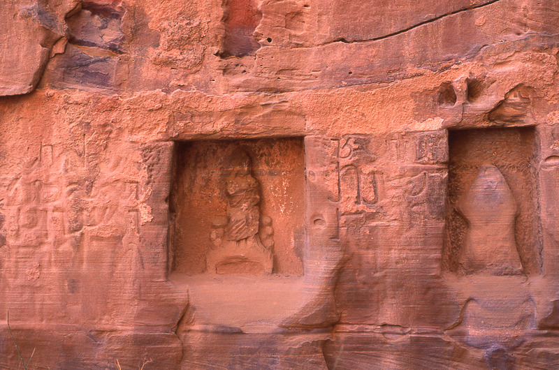 Petra, relief of Isis and other niches and Nabataean inscriptions of Wadi as Siyyagh