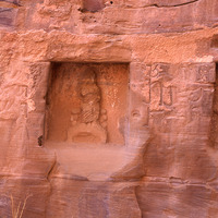 Petra, relief of Isis and other niches and Nabataean inscriptions of Wadi as Siyyagh