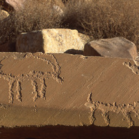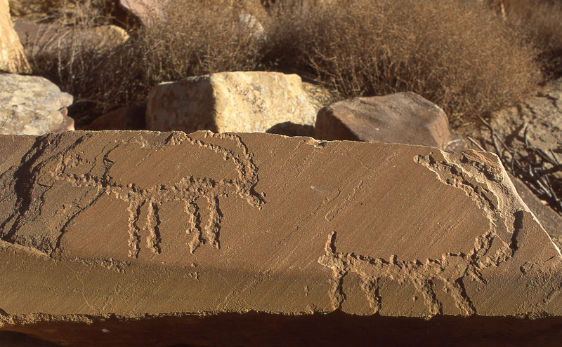 Petra, Umm Al-Biyara, two ibexes engraved on rock
