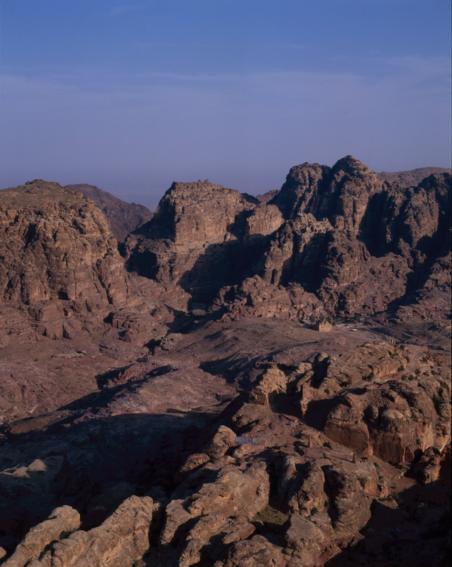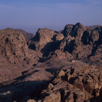 Petra, Jabal Madhbah, High Place of Sacrifice and obelisks and view north west