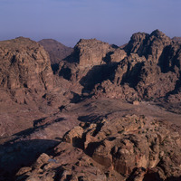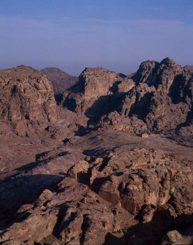 Petra, Jabal Madhbah, High Place of Sacrifice and obelisks and view north west
