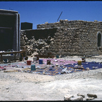 اللجون- موسم حفريات 1985، منطقة غسيل الفخار بجوار مبنى الجيش العثماني والذي يعود تاريخه لعام 1910 والمدرسة الحديثة
