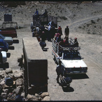 اللجون- موسم حفريات 1985، وصول العمال المحليين الى الموقع بالجرار