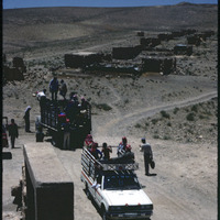 اللجون- موسم حفريات 1985، وصول العمال المحليين الى الموقع بالجرار