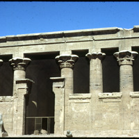 الفناء الأمامي لمعبد إدفو مع تمثال حورس
