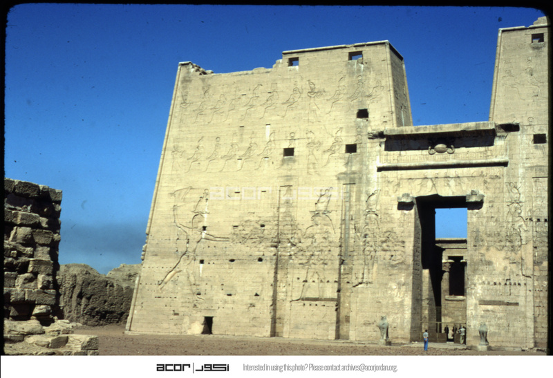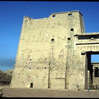 Main entrance of Edfu Temple showing the first pylon