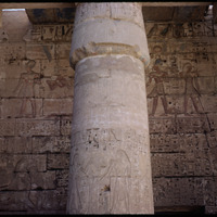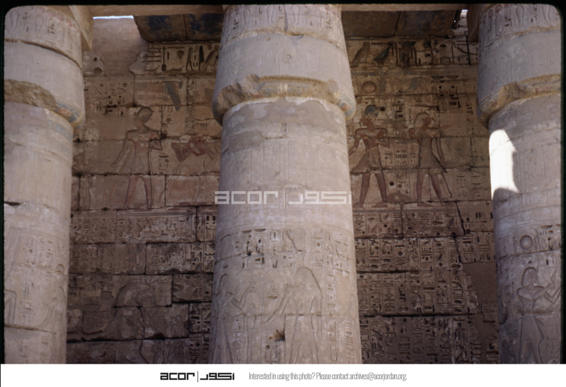 تفاصيل الأعمدة ذات الكتابة الهيروغليفية والنقوش في مدينة هابو