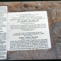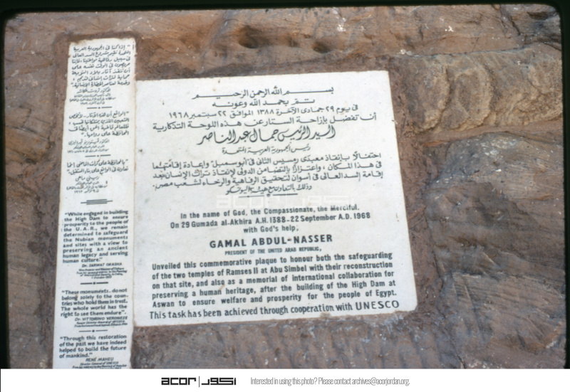 لوحة تذكارية في أبو سمبل احتفالا بانقاذ معبدي رمسيس الثاني في ابي سمبل واعادة اقامتها
