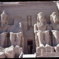 View of the Great Temple of Ramesses II at Abu Simbel and hill